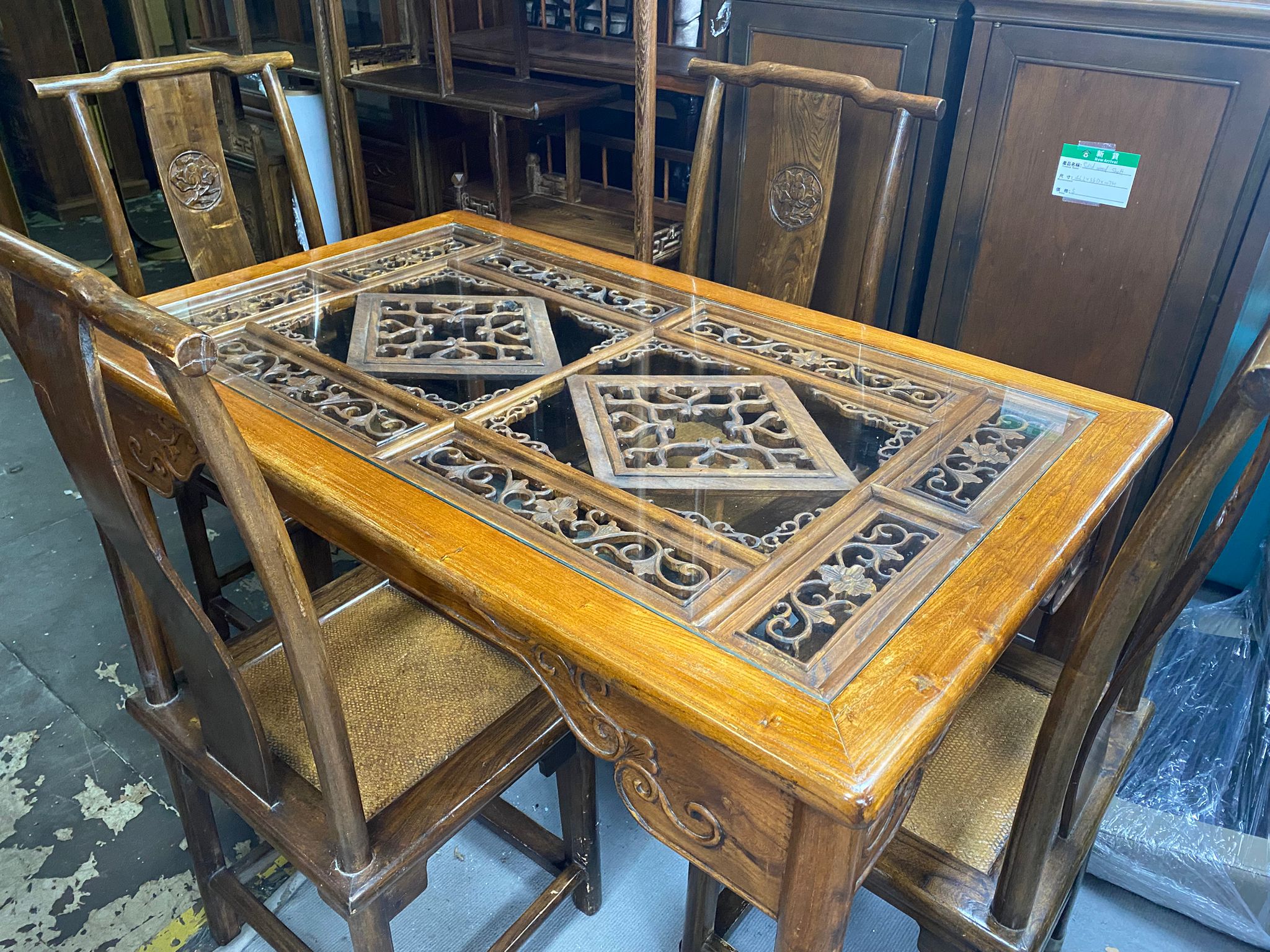 Carved Elm Wood Dining set